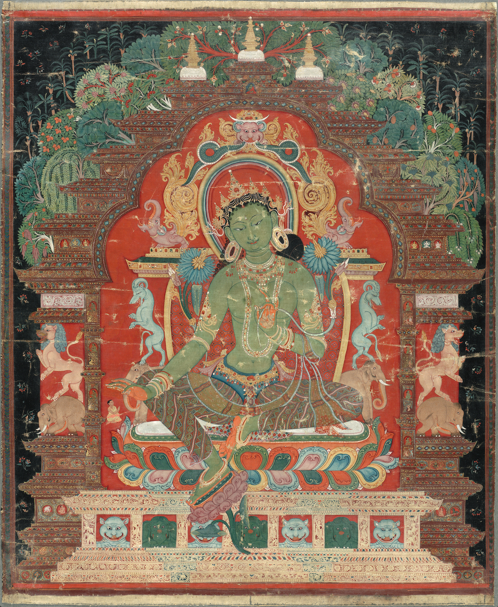 Figure 1: Green Tara Tibet 13th century Distemper on cloth. 52,4 x 43,5 cm Cleveland Museum of Art 1970.156 Picture : Cleveland Museum of Art website