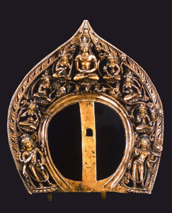 Himalayas an Aesthetic Adventure, 2003: 128. "79 Aureole with Buddhist Deities", Western Himalayas or Western Tibet, 10th century. Bronze with silver and pigment, h. 29 cm, Private Collection Switzerland.