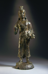 The strength of the South Asian and Himalayan art however draws attention to the fact that LACMA’s collections of Southeast and East Asian Buddhist art are not as robust. Compared with what is available in collections found in museums east of the Mississippi, LACMA only has a limited selection of Chinese Buddhist art available for the exhibition, though what is shown is still of high quality. This deficiency can be traced as far back to the museum’s (then the Los Angeles Museum of History, Science and Art) abortive acquisition of the Johan W.N. Munthe collection of Chinese art in the 1930s, which was later discovered to consist mostly of forgeries.[