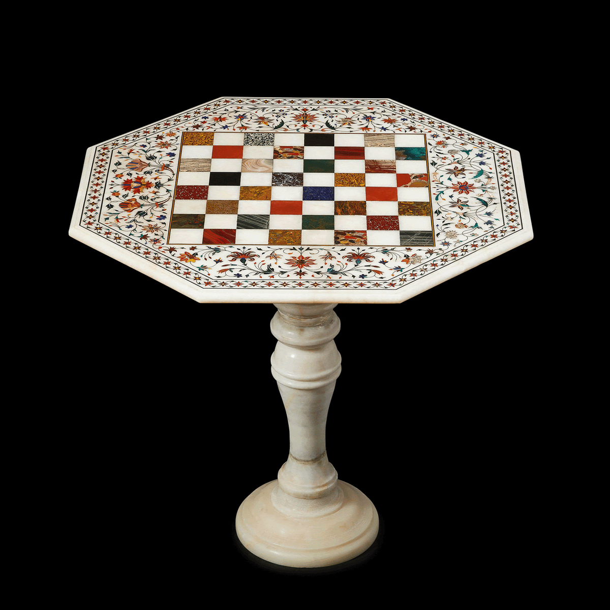Pietra-Dura Marble Games Table 19th century Agra 24 1/2 inches (62.2 cm) sq; 22 ½ inches (57 cm) high Provenance:Sotheby’s New York, 28 October 1991, lot 182