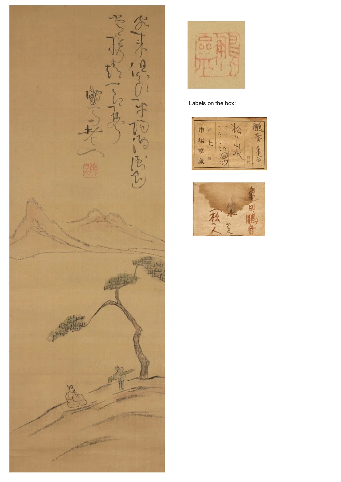 Posted By: Andrea Tue, Jan 20, 2026 Dear Nagy, thank you very much for your clarification. Although I don't know what the number 7 and the measurements might refer to. Not the silk painting. Perhaps the original drawing from which the image in the 1816 printed book (ehon) Mountains of the Heart (Kyōchūzan) was taken? Best regards, |