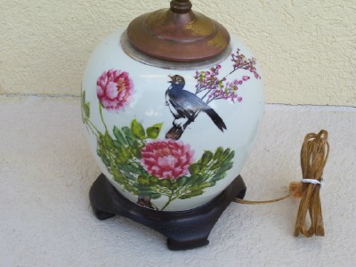 I recently acquired a beautifully hand-painted Chinese Porcelain Ginger Jar Table Lamp with exquisite paintings of black bird and flowers in front and Chinese writing on back. Bottom has hand-carved dark wood, possibly rosewood or ebony, and topped with lovely Asian-style finial. Perhaps Qing Dynasty? Meaning of the art work or writing? I read on-line that these were often decorated to reflect happiness or prosperity and given a ceremonial gifts such as wedding. Also, any ideas on possible value?