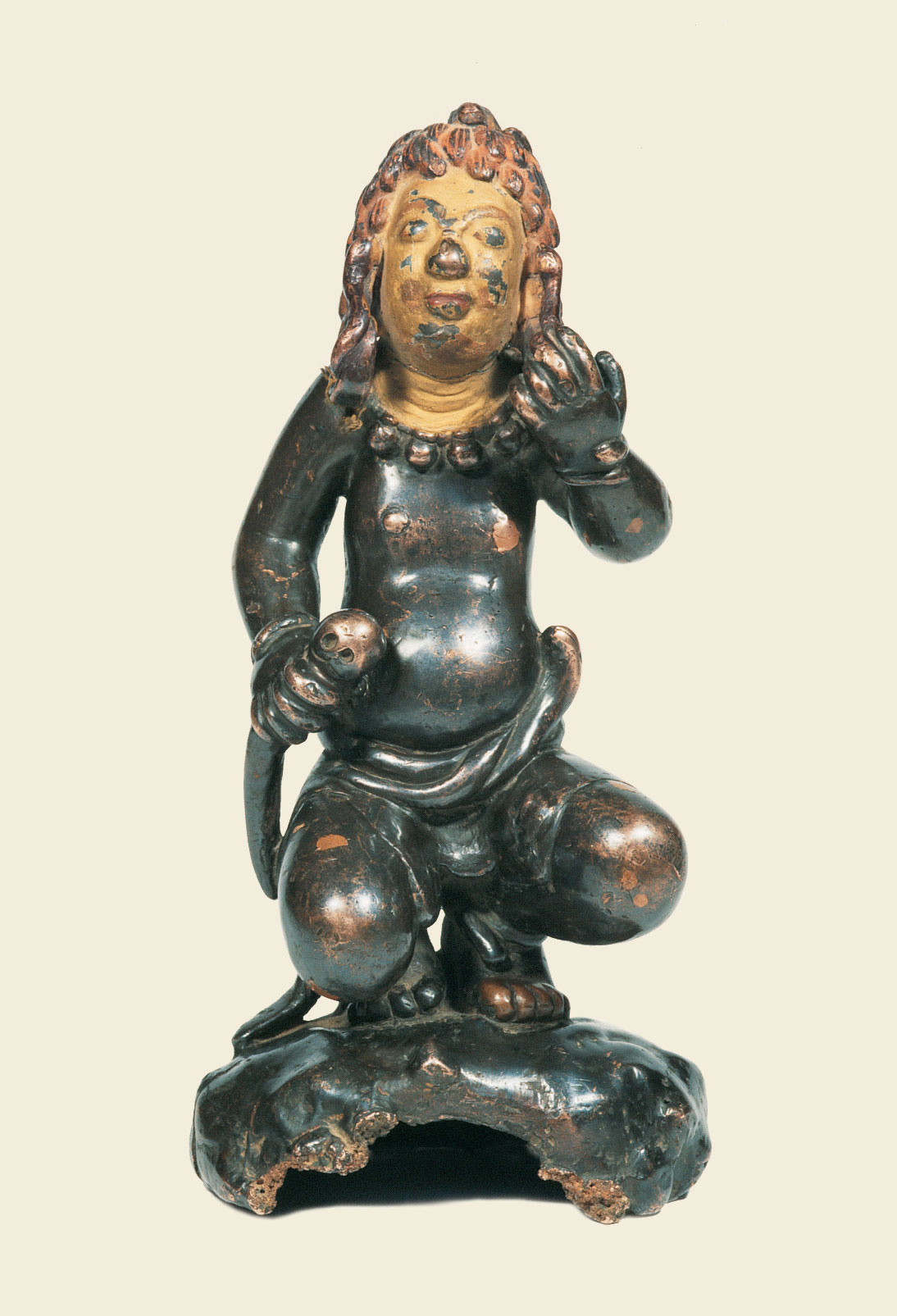 Figure 3: Standing/crouching male figure with skull-head staff; perhaps Yama?