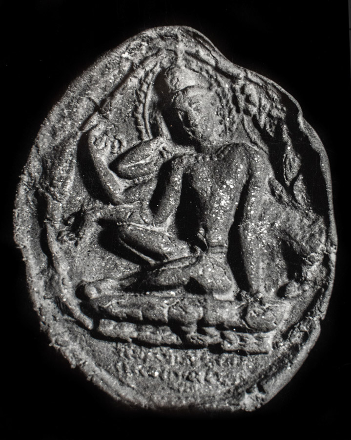 Figure 7: Cintāmaṇi Cakra Avalokiteśvara. Nalanda, 9th century. Terracotta. The Asutosh Museum of Indian Art, Calcutta: T.1388. Rephotographed by Rob Aft (2021).