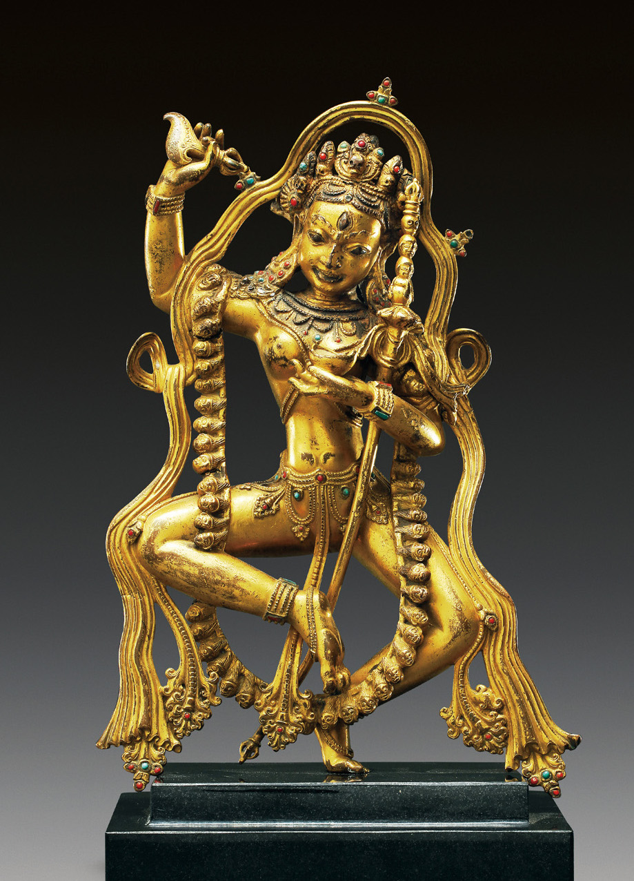 Figure 249: Vajrayogini / Vajravarahi (Vajravārāhī / Vajra Yoginī) Densatil circa 1407-1408 Gilt copper alloy. Private collection
