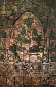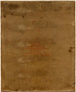 5], Steven M. Kossak, drawing on the strong Nepalese elements in this painting, comparisons with thangkas probably originating from Sakya, which we will discuss later, and certain murals from Shalu, concluded his essay by suggesting a possible attribution to the Newar artist Aniko, who worked on the construction of the Sakya monastery from 1260, then from 1263 at the court of the Mongol emperor Kublai Khan (1215-1294). There he held the position of "chief supervisor of all classes of craftsmen in the imperial workshop" from 1273 until his death in 1306.