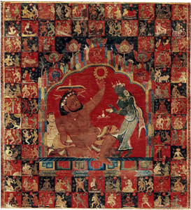 It has been suggested that this small Nepalese-style thangka may have been commissioned by the monarch during his stay in the Kathmandu Valley in 1313 [