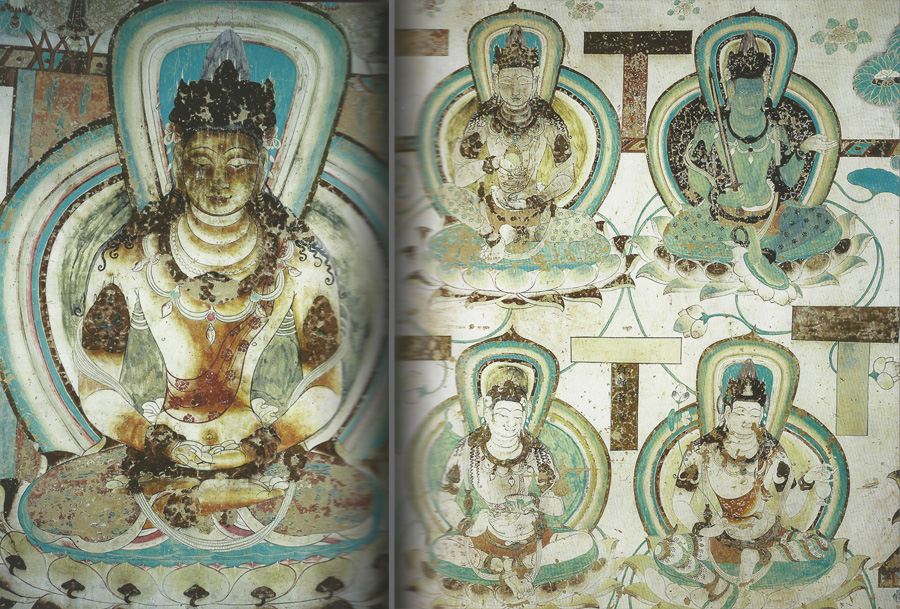 Fig. 8: Vairochana and four Bodhisattvas Yulin cave №25, Gansu province, China 821 (?) AD Mural painting height 120 cm (approximate) (after Fan, Jinshi. The Caves of Dunhuang. Honk Kong: London Editions (HK) Ltd, 2010:184,185.).