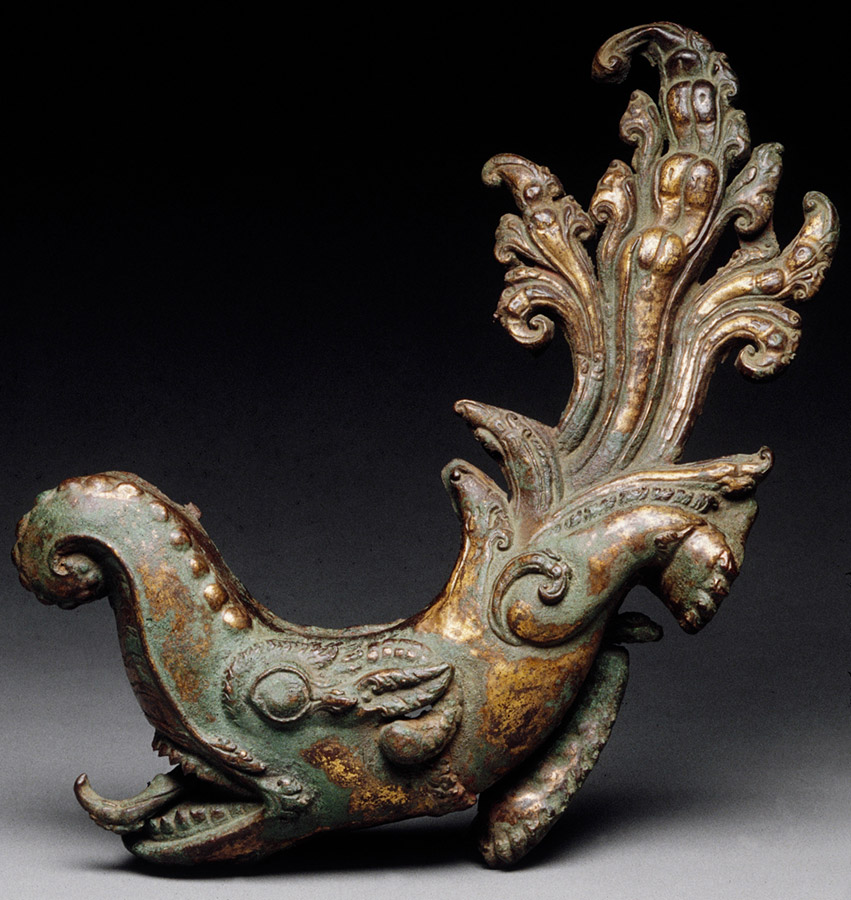Mythical Aquatic Creature (Makara) Nepal, 10th century Repoussé copper alloy with traces of gilding 14 x 6 1/4 x 2 3/4 in. (35.56 x 15.88 x 6.99 cm) Gift of James H. Coburn III Los Angeles County Museum of Art (M.85.279.6)