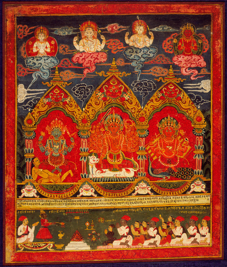Three Mother Goddesses (Matrikas): Mahalakshmi Flanked by Chamunda (left) and Kaumari (right)