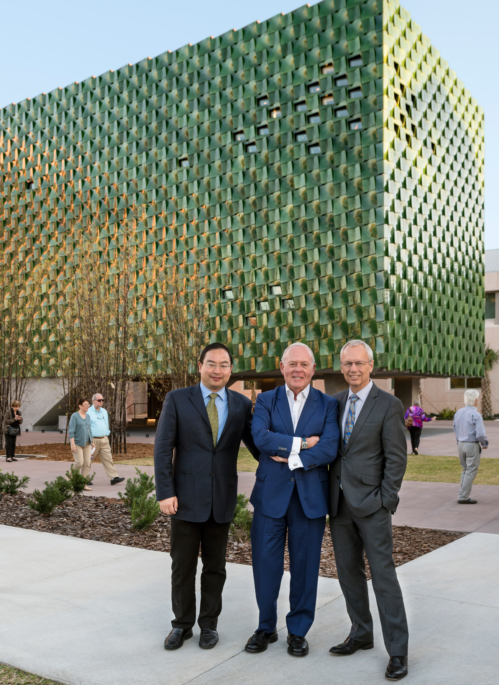 Fan Zhang, Curator of Asian Art at the Ringling at the time of the opening of the Center for Asian Art (now Curator of Chinese Art at The Asian, San Francisco); Rodolfo Machado from the architecture firm Machado Silvetti, which designed the Center; and Ringling Director Steven High.