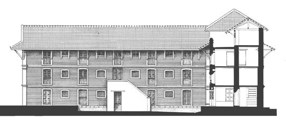 East wing elevation (as seen from the garden), before reconstruction