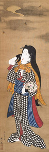 I’m looking for help identifying the painter of this ukiyo-e hanging scroll on silk.
