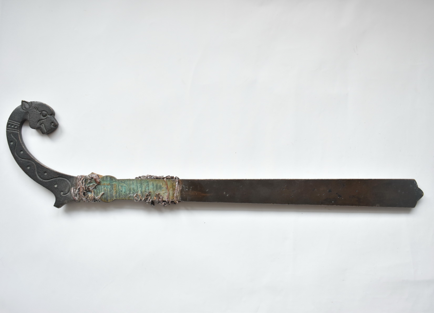 I need help or at least a direction for further research for this object. Does anyone know what is its purpose, where and when it could have been made. It looks Asian but I am not sure. It looks like a staff of some kind or baton like weapon. Looks to be made of solid 1cm thick ( for the entire length) bronze or brass. It is around 55cm long. Feels heavy and solid - weigh 1.3Kg. It has stamped RS&E.