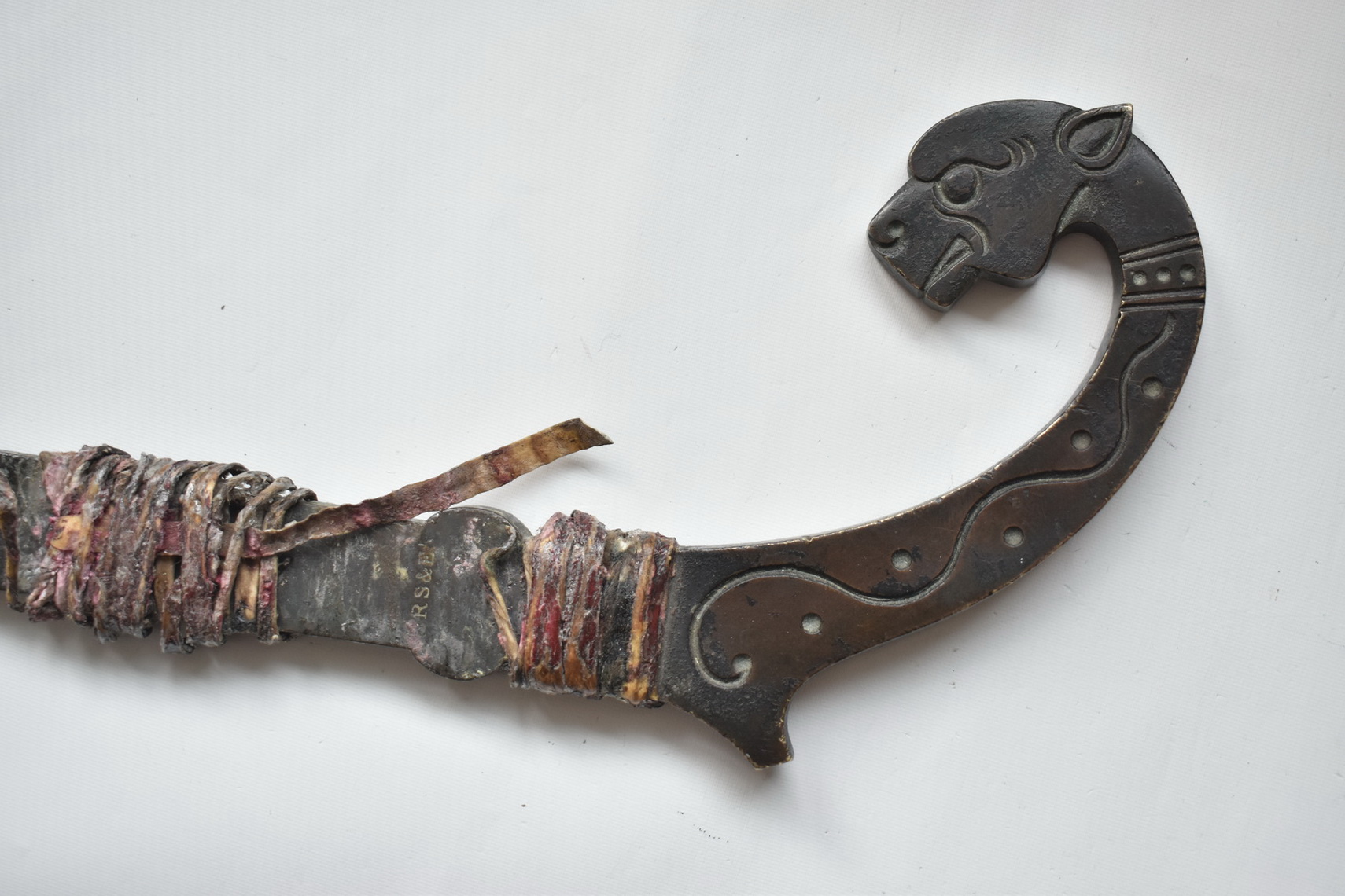 I need help or at least a direction for further research for this object. Does anyone know what is its purpose, where and when it could have been made. It looks Asian but I am not sure. It looks like a staff of some kind or baton like weapon. Looks to be made of solid 1cm thick ( for the entire length) bronze or brass. It is around 55cm long. Feels heavy and solid - weigh 1.3Kg. It has stamped RS&E.