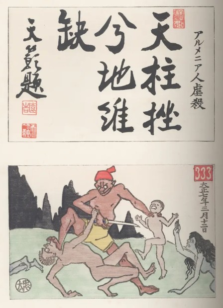 Posted By: Irwin Fri, Dec 26, 2025 IP: 174.127.209.134 Review of my below transcription of the commentary by Enkichi Ōki 大木遠吉, signing as 天籟 Tenrai?, on Ito Chuta's sketch titled The Armenian Massacre, would be greatly appreciated. |