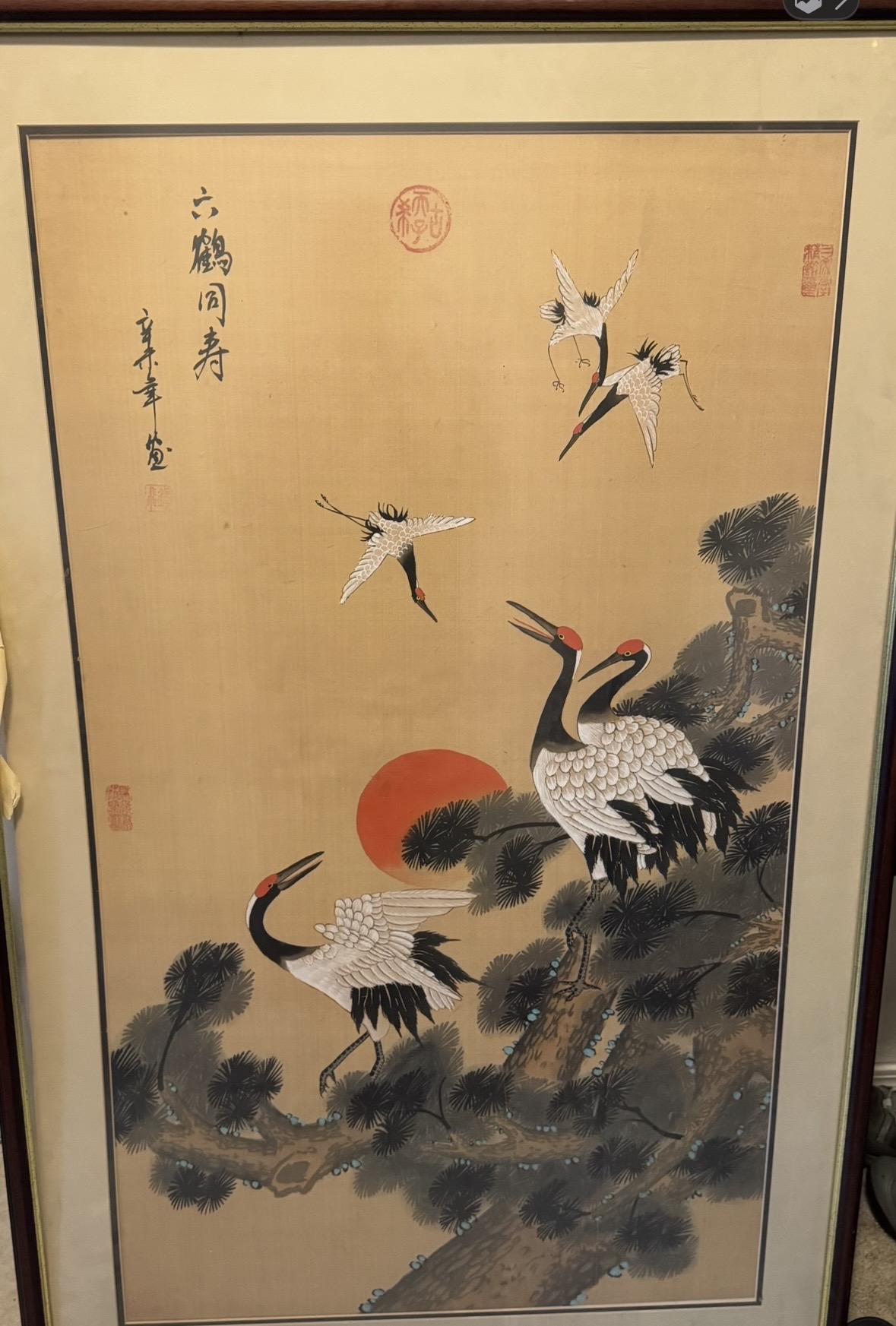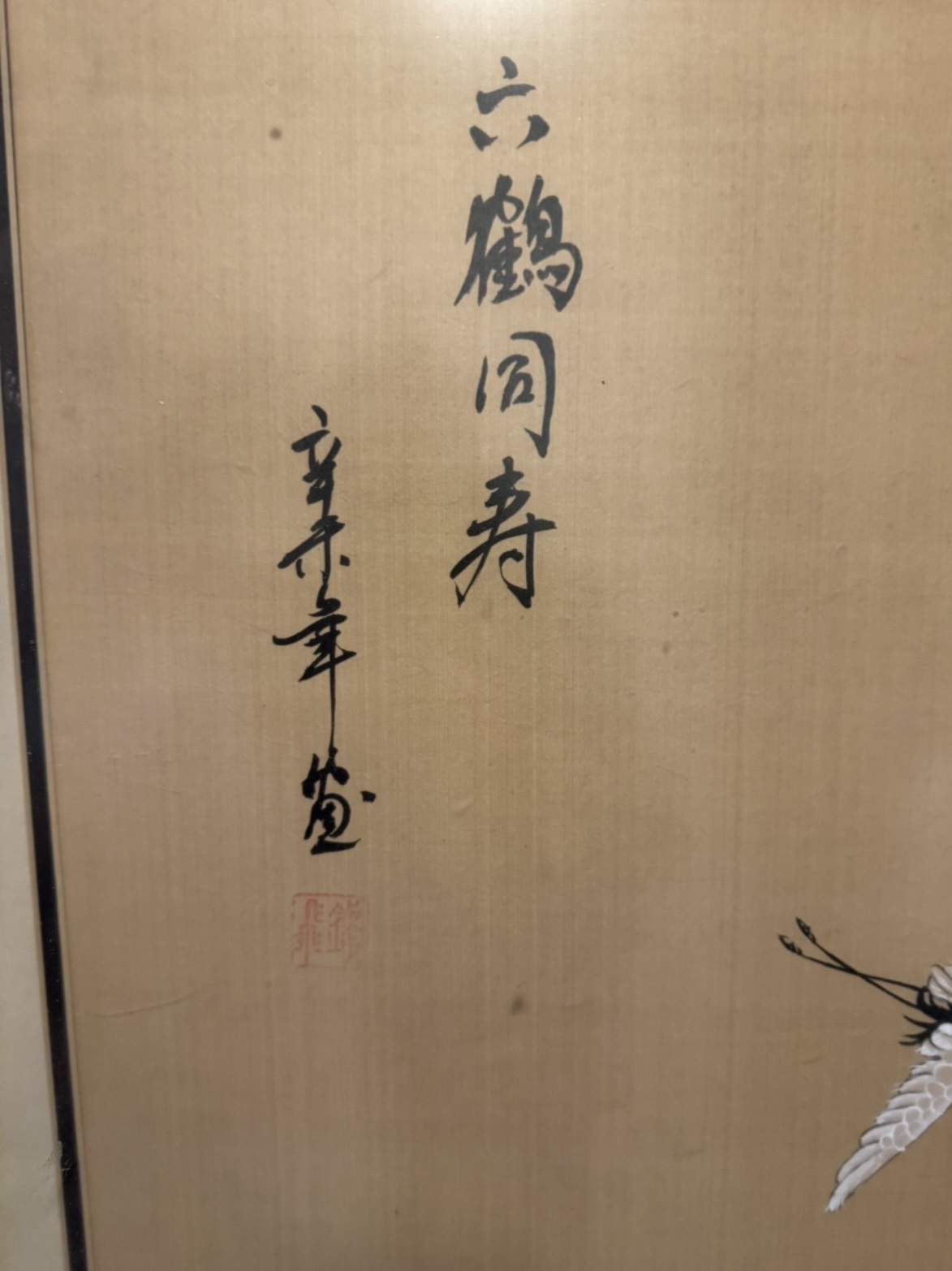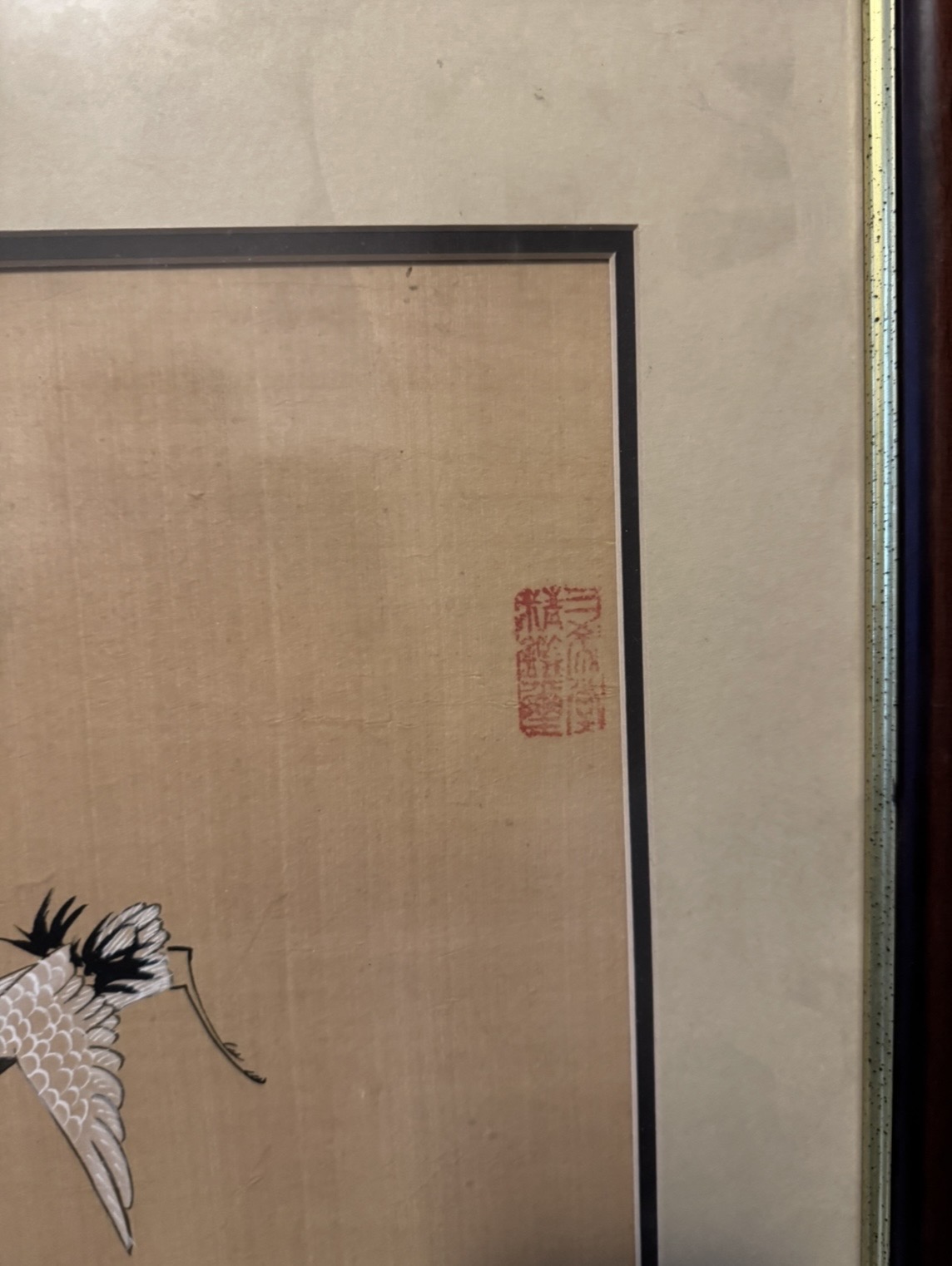 Posted By: rat Sun, Jan 18, 2026 dated 1991, only indication of artist may be the seal under the inscription, but this is decorative rather than fine art, a wish for long life (from the title as well as the depiction of cranes and pines). the seals you posted images of are facsimiles of some of the better known collector's seals belonging to the Qianlong emperor (r. 1736-1795). the earliest surviving auspicious picture of this type dates from the Huizong court, and is discussed in Peter Sturman's "Cranes over Kaifeng" article. |
