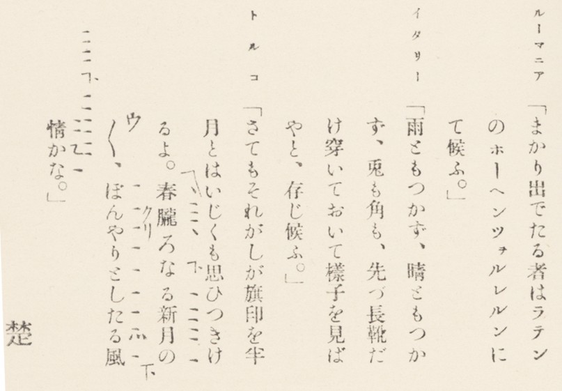 ルーマニア 「まかり出でたる者はラテンのホーヘンツヲ ルレルンにて候ふ。」