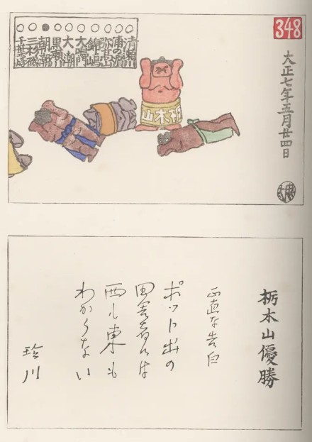 Posted By: Irwin Mon, Jan 26, 2026 IP: 174.127.209.134 Would appreciate help transcribing the commentary by Narusawa Kinbei signing as Reisen 玲川 on on Ito Chuta's sketch titled Tochigiyama Wins the Championship. |