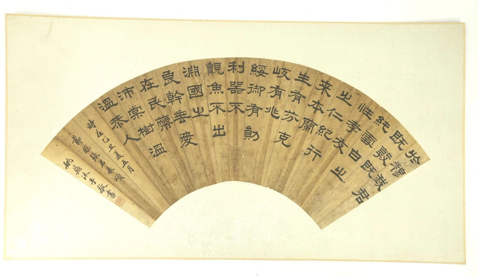 The inscription is from a stele dating back to the Han dynasty. The painter rearranged the original four-character lines into seven lines, which looks better here.