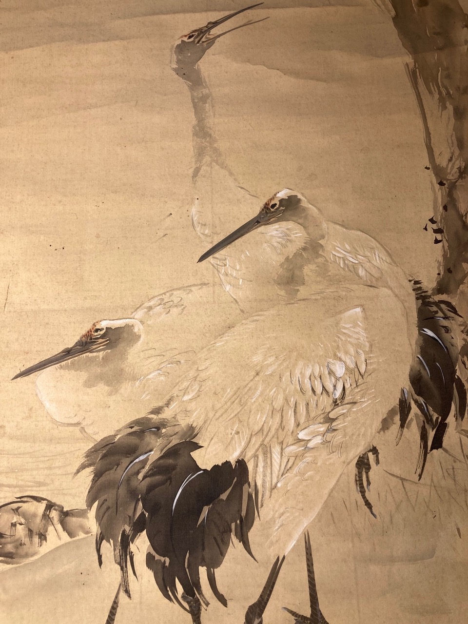 Subject:Re: painting on silk, 3 cranes and tree trunk