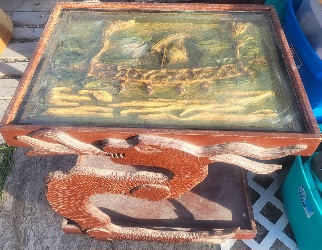 Posted By: Ms. Vicky Mon, Mar 23, 2026 IP: 131.150.112.55 My 87 yo father was an antique collector and seller. We have no idea as to the origins of this piece or whether it is genuine or faux. It is very heavy and we think its made from mahogany. There is a carving on top covered by glass. We would sure appreciate help in determining its value amd whether to hang onto it or not. |