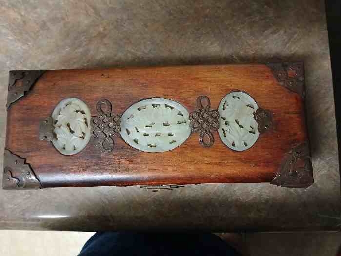 Posted By: I. Nagy Sun, Mar 29, 2026 It is a vintage Chinese jade inlaid (probably) rosewood box with brass trimmings. |